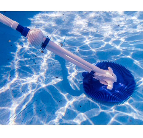 Este limpiafondos de piscina es ideal para piscina de tamaño medio/bajo, se conecta directamente a el skimmer o toma de limpiafondos de la piscina por lo cual la suciedad ira directamente al sistema de filtración de la piscina, es recomendado tener un filtro de arena.
