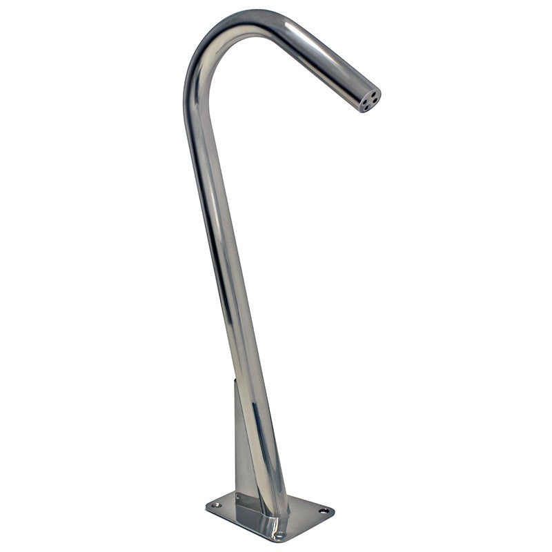 Cañón residencial en acero inoxidable pulido. Sujeción en el suelo con tornillos y tacos de anclaje.