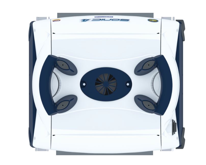Sonic cubre completamente el suelo y paredes sin línea de flotación de la piscina en un ciclo de 2h. Incorpora 14m de cable, cepillos de PVA y motores brushless DC de alta calidad (1 motor bomba y 1 motor de tracción).
